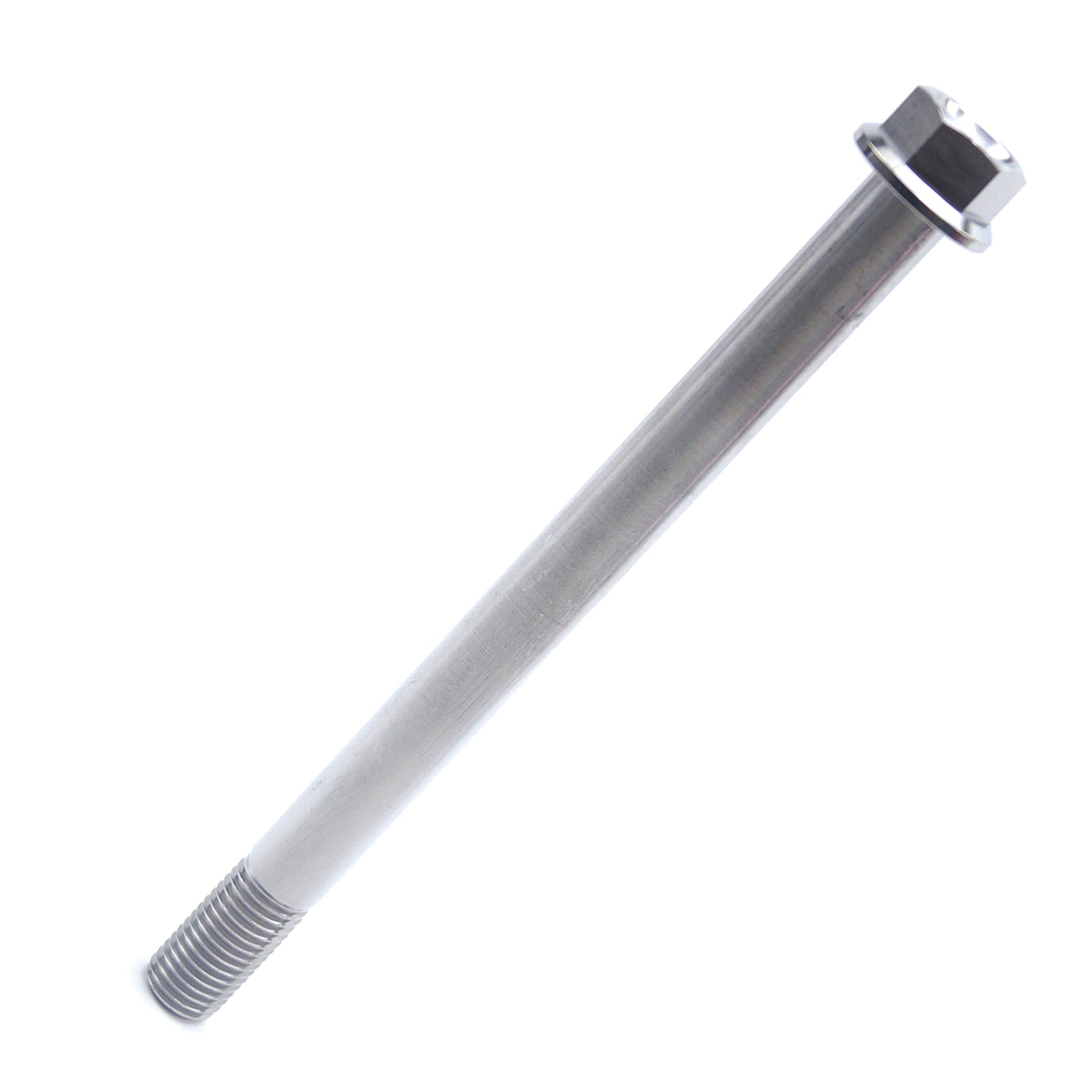CNC-machined from high-strength Grade 5 (6Al/4V) titanium alloy, this M10x125mm standard flange bolt features a fine 1.25mm thread pitch and is designed for lightweight durability and excellent corrosion resistance. It is commonly used in motorcycle, bicycle, and other high-performance applications.