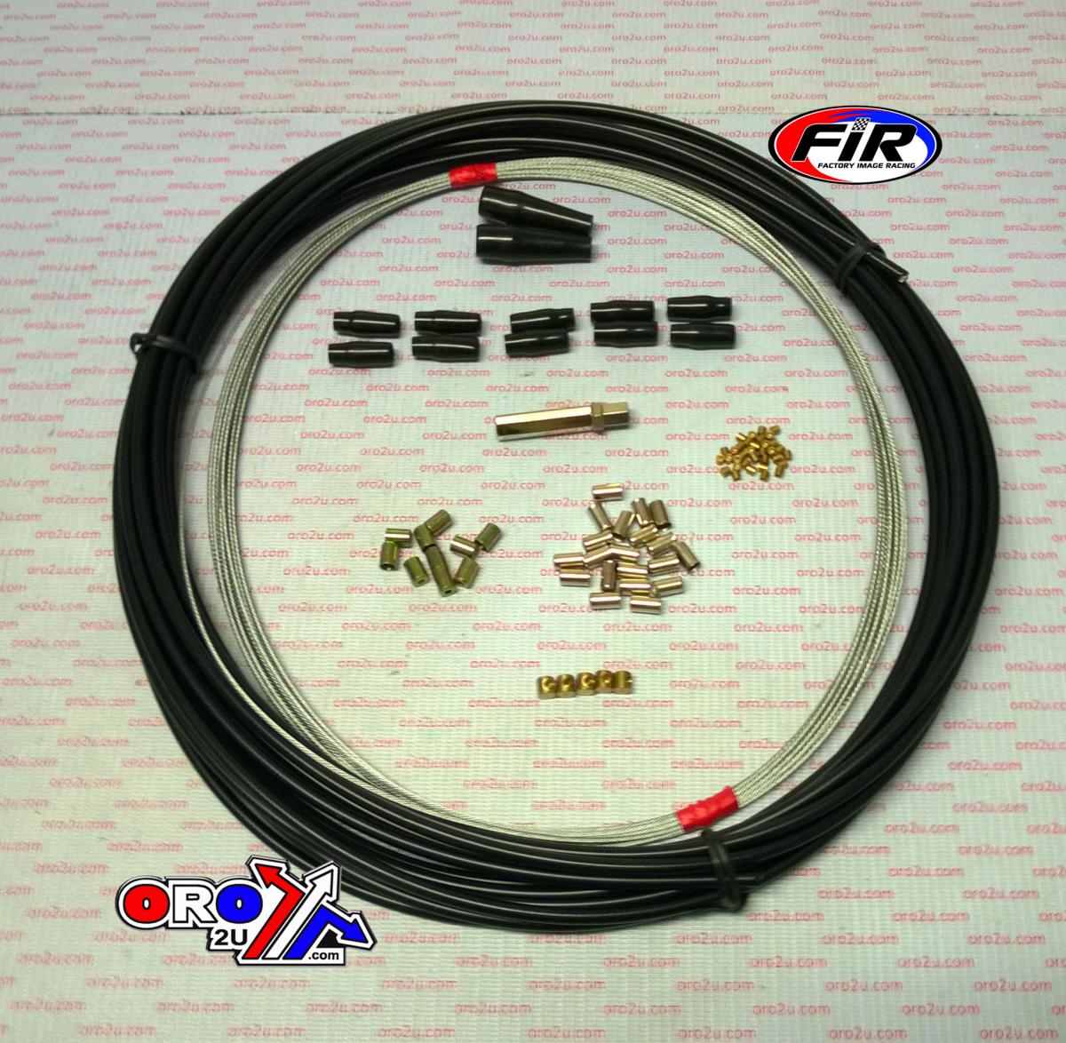 Typical application: motorcycle throttle cables. Supplied with a black PVC cover. A range of nipples and high quality fittings are included. The ferrules are a snug fit on the conduit. They can be bonded in place during the assembly or retained with a small centre punch indentation to their side. The fittings can be adapted for a range of models. There are enough fittings in the kit to make at least five lines.